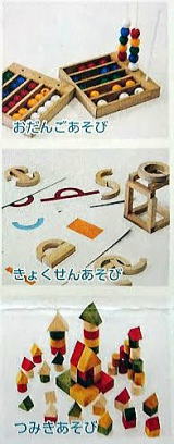 | 心理学者 J.P.ギルフォード博士の理論に基づく教具(SIあそび)を使用して毎日少しずつ個別指導を行います。 急速に知能が発達する幼児期に、正しい理論に基づいた指導によって、脳の思考プロセスを刺激し幅広い思考力を育てようとするのがSIあそびです |